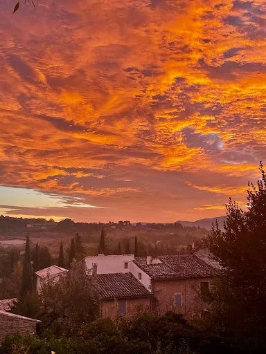 There is the scent of fires in the air on cool nights while taking an evening stroll. Sunsets over the Luberon mountains seem to bring their best show of colors at the end of each day.